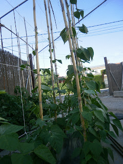 Com que l'hort té les dimensions que té, només vaig plantar 8 mongeteres de mata baixa (que són de les que he collit) i 8 mongeteres d'emparrar. Em sembla,però, que amb la producció d'aquestes ja en tindré per uns quants mesos.